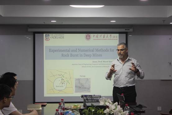 Murat Karakus教授在逸夫楼1311为美高梅4858线路登录师生做了“Experimental and Numerical Methods for Rock Burst Investigation”的报告,介绍了他在岩爆方面的最新研究进展,包括岩爆的真三轴实验、损伤本构模型、数值模拟分析,以及岩爆受温度的影响等,美高梅4858线路登录李明耀老师和部分研究生就感兴趣的话题与Murat Karakus教授进行了深入的学术讨论,报告获得了广大师生的一致肯定。最后,Murat Karakus教授介绍了阿德莱德大学的基本情况,以及在博士招生方面的流程和基本要求,希望通过此次来访促进双方在岩石力学方面进行合作。