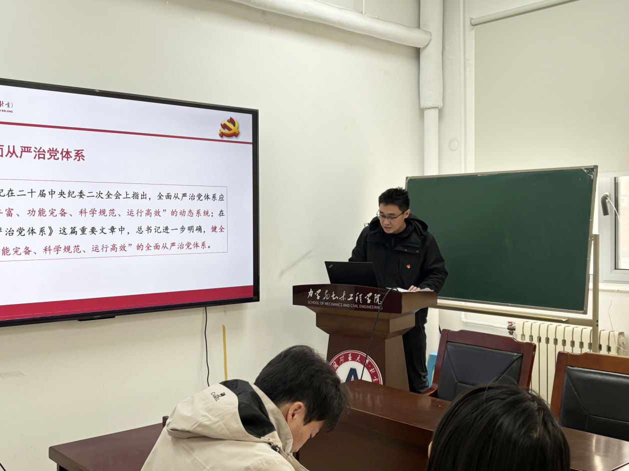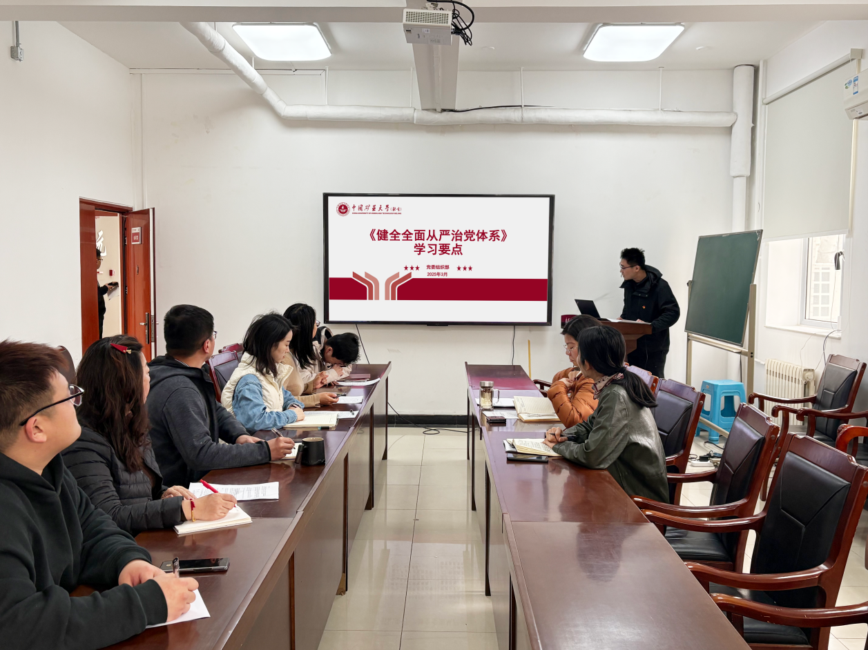 3月7日下午,学院党委理论学习中心组在力土楼222会议室,集中学习《健全全面从严治党体系》。行政党支部纪检委员徐志超进行领学,行政党支部副书记杨灏主持,院行政党支部全体党员参加学习研讨。
