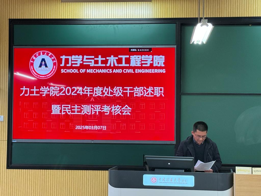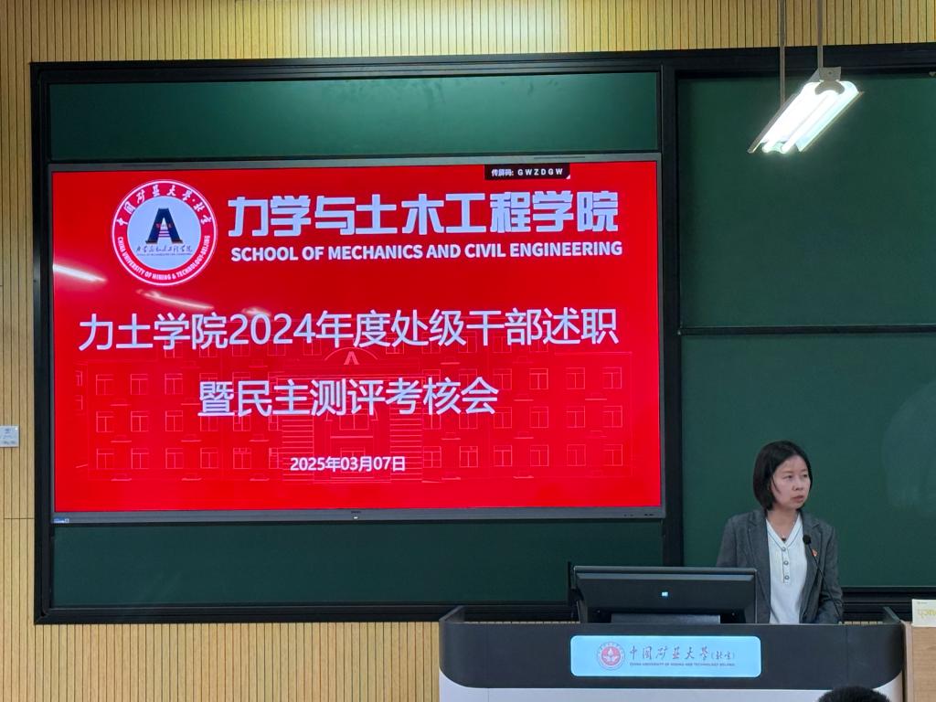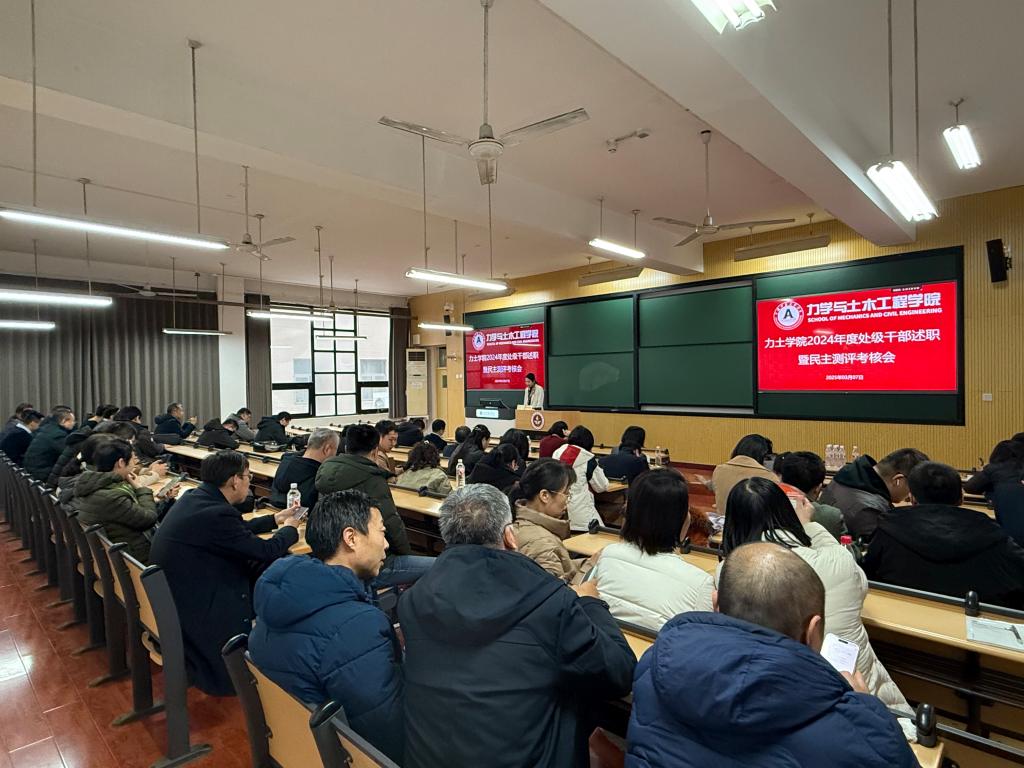 3月7日下午,力学与土木工程学院2024年度处级干部述职暨民主测评考核会在教学楼106召开。学院全体处级领导班子成员及全体教职工参加会议。会议由院党委书记李帅主持。